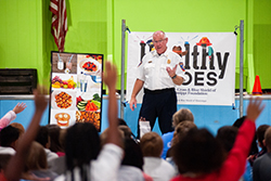 For police officers’ or firefighters’ willingness to visit K-5 elementary schools with healthy eating and exercise activities as part of the Healthy Heroes Program, city mayors may request Foundation grant funding for items to improve community wellness. Examples of some items are enhancements to a farmers’ market, creation of a community garden, purchase of outdoor fitness equipment for a city park or buying physical education equipment for a local school.